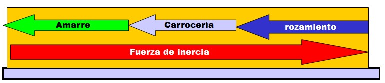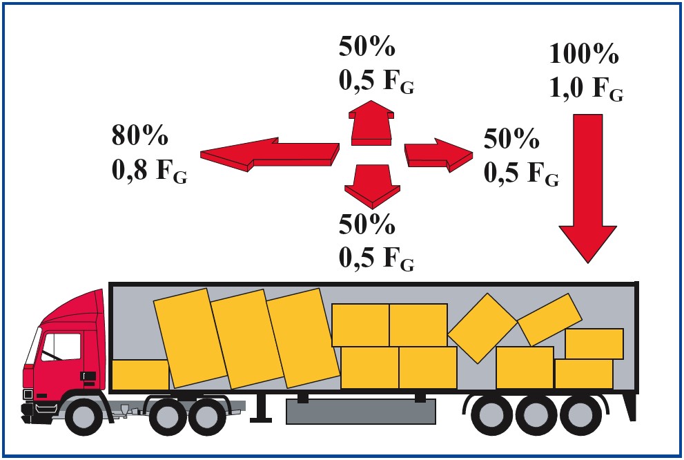 The inertia force is due to inertia during transport, it causes lateral displacements forward or backward. If the load were to move, the force would cause a movement that would cause the weight of the load to be much greater than its actual weight. To determine the weight of the load at a moment when the inertia force is acting (a collision, braking, acceleration, etc.) one must proceed by calculating :